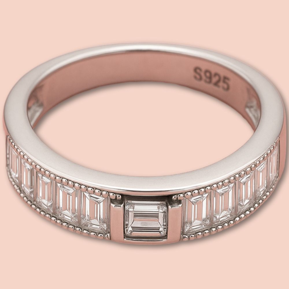 A Sophisticated Baguette Eternity Band Featuring A Continuous Row Of Baguette-Cut Stones.