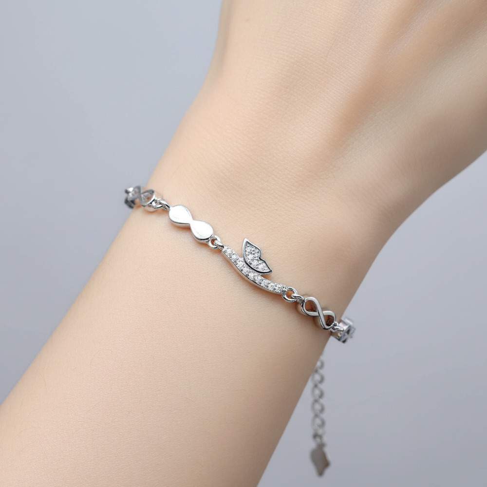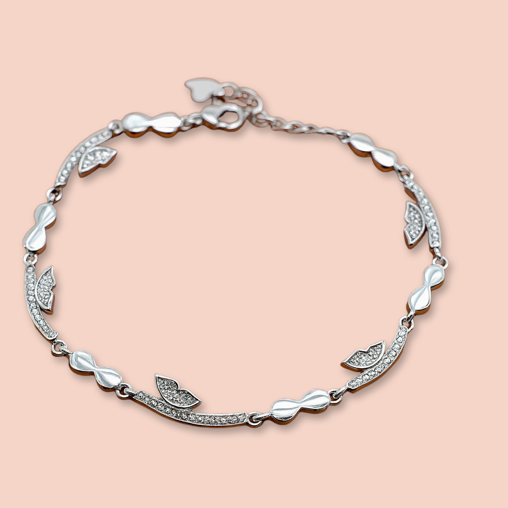 Design Of Sleek Bow-Shaped Links And Leaf-Inspired Charms, With Cubic Zirconia Stones.