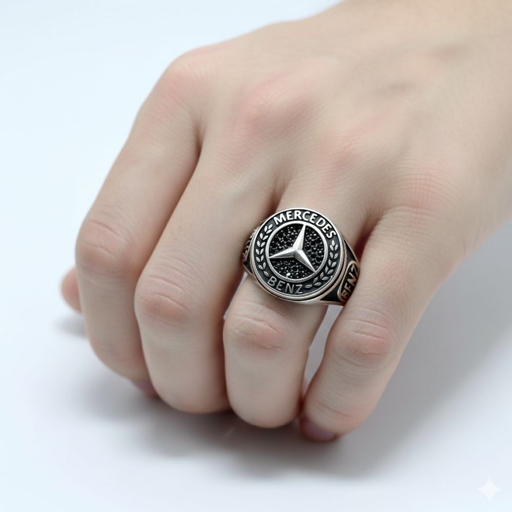 Show Off Your Passion For Luxury Cars With This Mercedes-Benz Emblem Statement Ring.