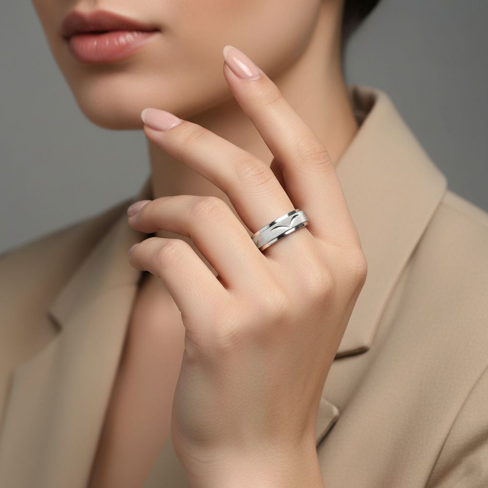 Crafted In Polished Silver/White Gold ToneThe Ring Features A Carved Leaf-Inspired Pattern. Size- 14