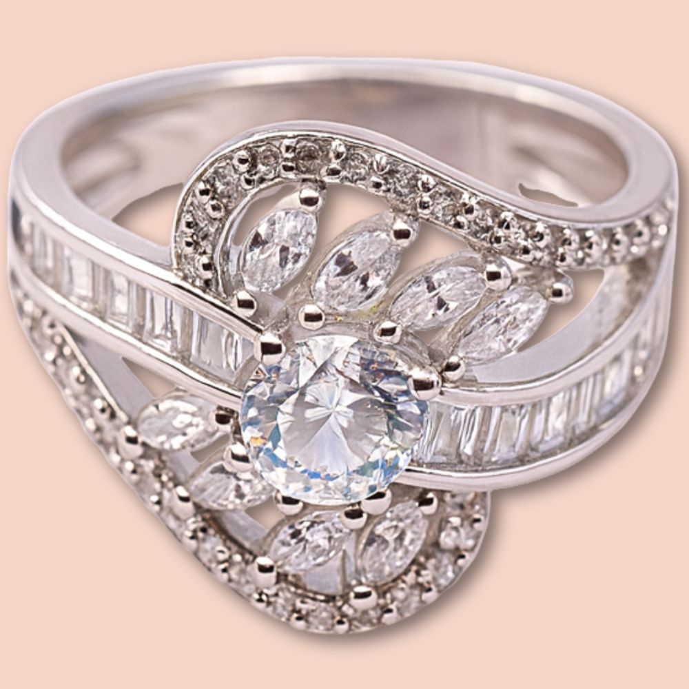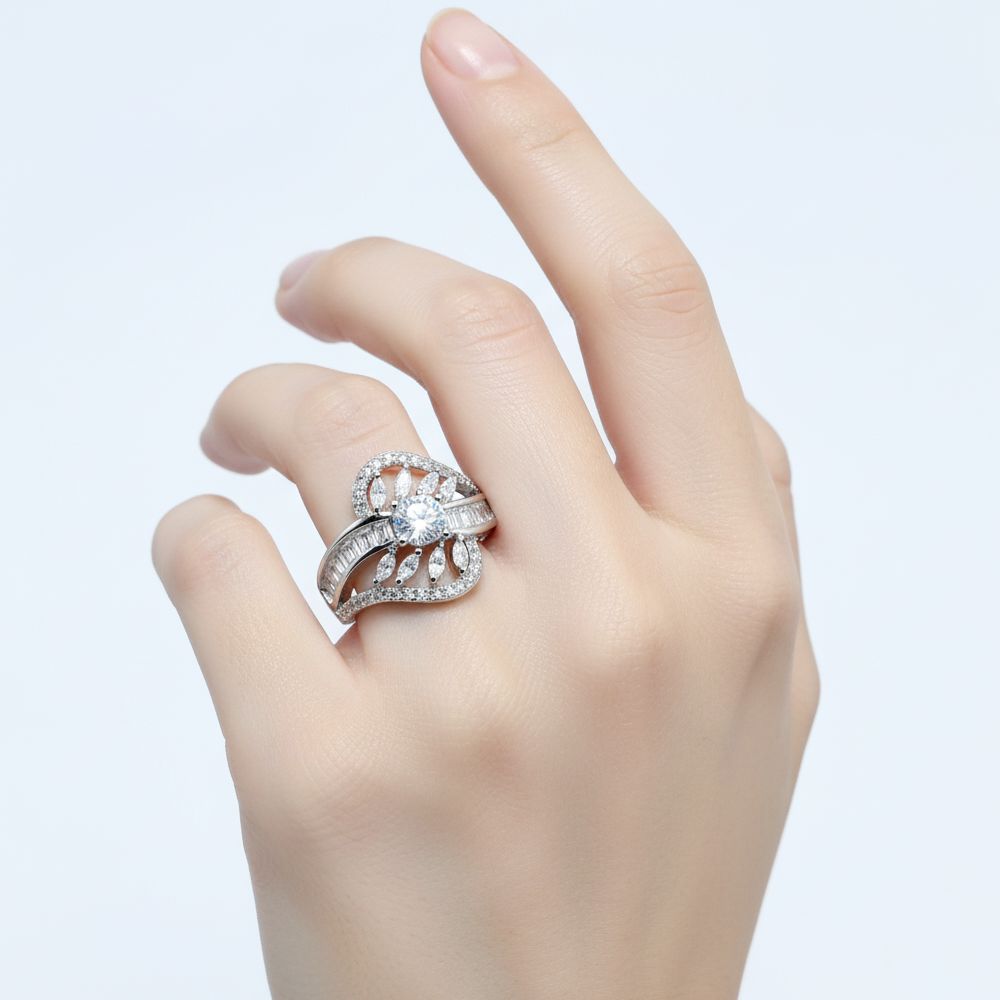 A Dazzling Cocktail Ring Featuring A Brilliant Round-Cut Center Stone Embraced By An Ornate Openwork Design