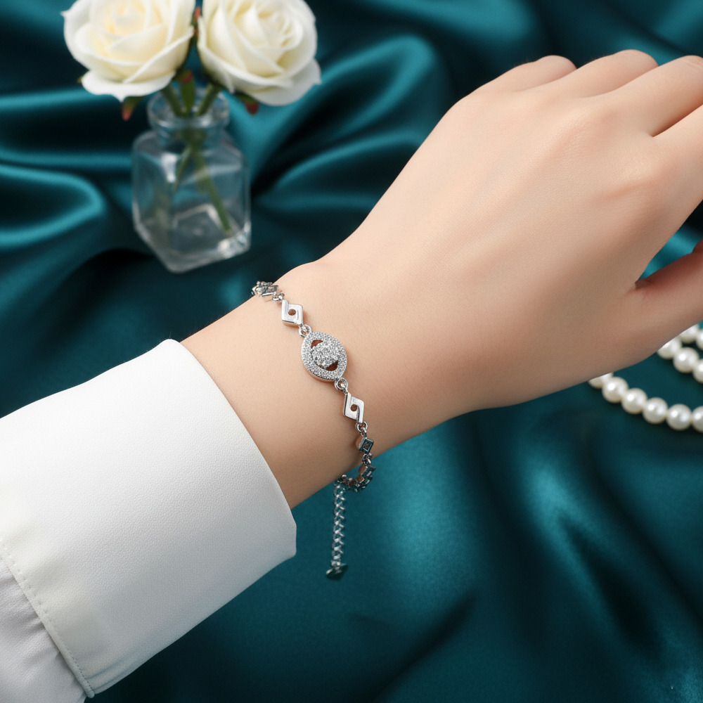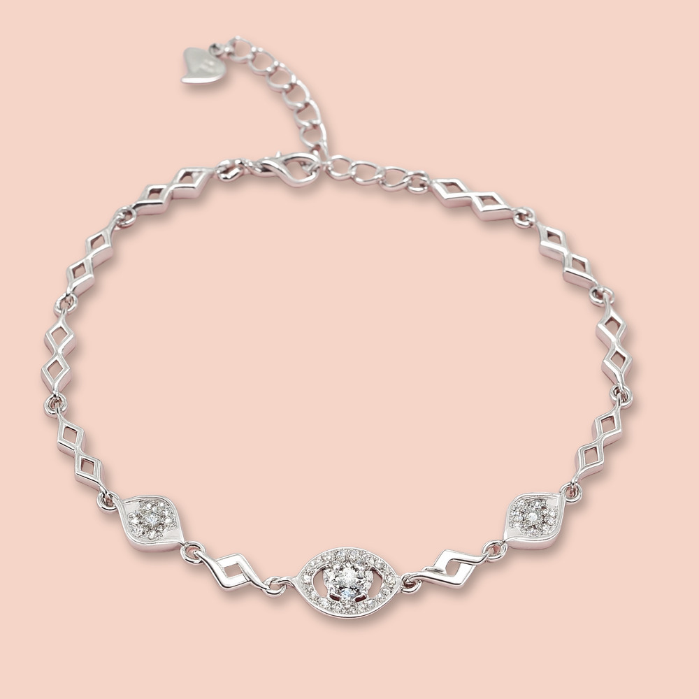 An Elegant Bracelet Featuring A Chain Of Interlinked Diamond-Shaped Motifs For A Sleek.