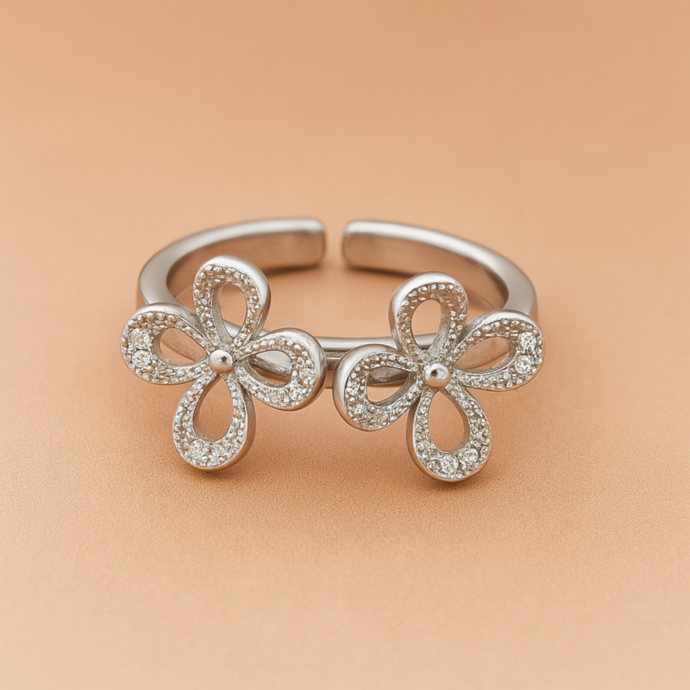 This beautifully designed toe ring a floral motif, each petal outlined with delicate crystal accents that add a soft sparkle.