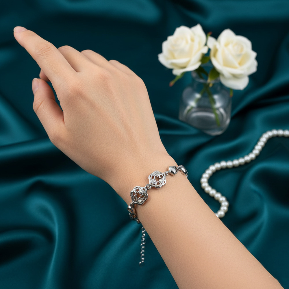 The Bracelet Features A Striking Centerpiece Of The Hamsa Hand.