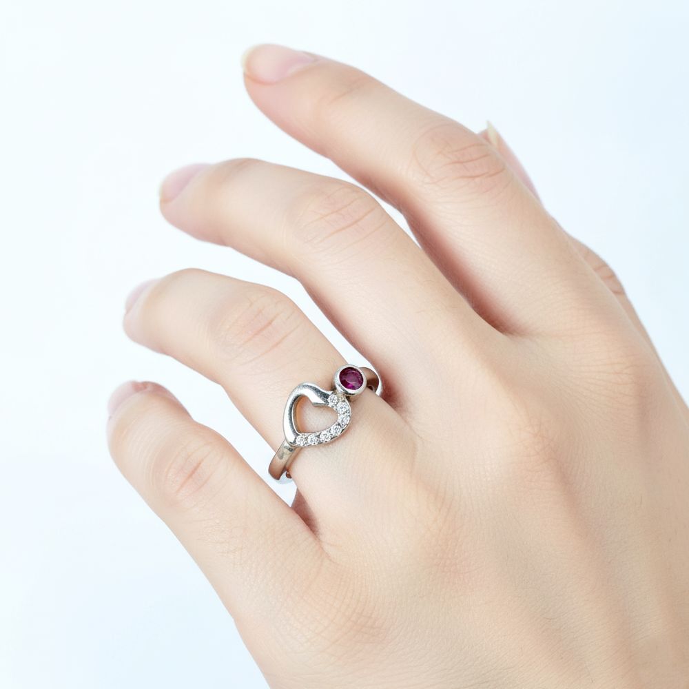 This Is A Romantic Open-Heart Ring With A Gemstone Accent. Size-7