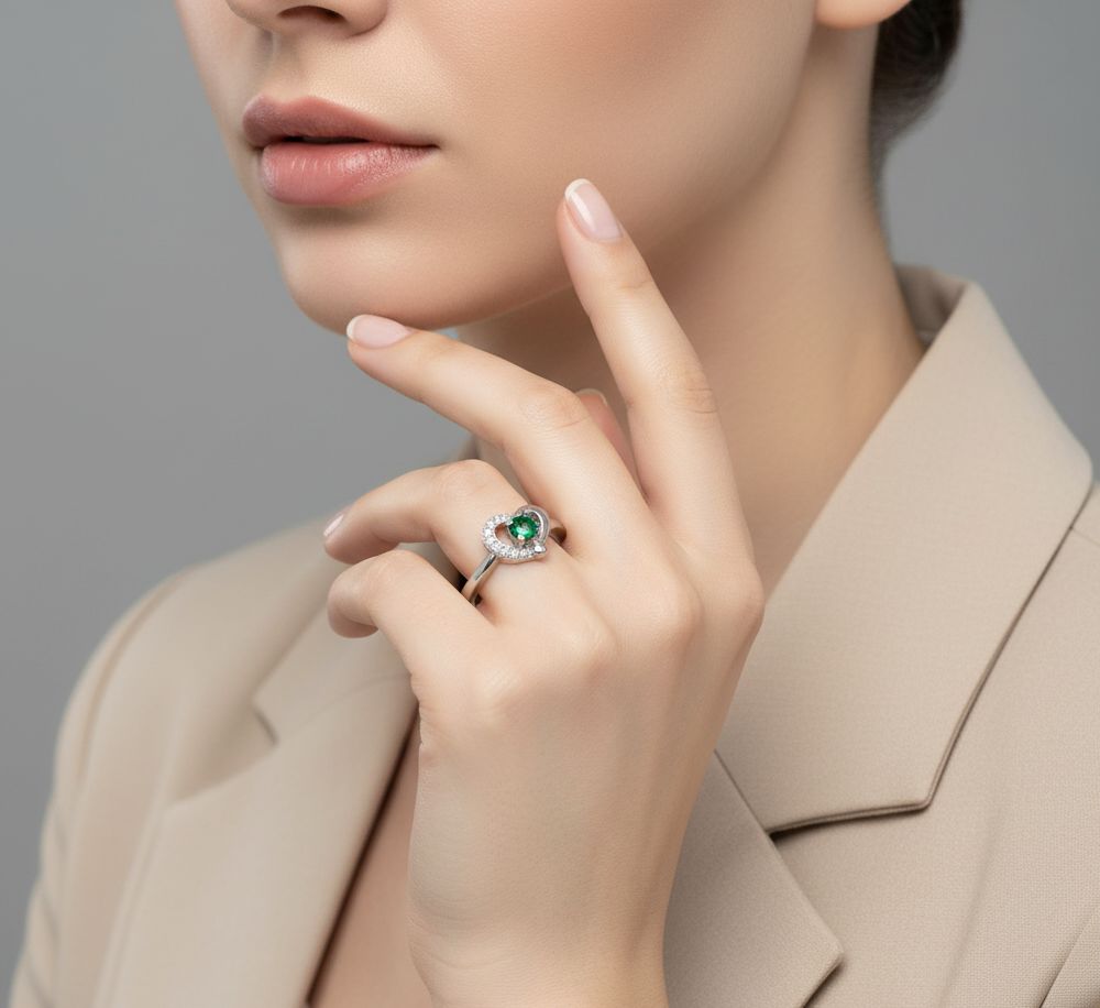 A Romantic End Elegant Ring in Polished Metal, Featuring An Open Heart Design Partially Encrusted With Sparkling White Stones. Size- 14