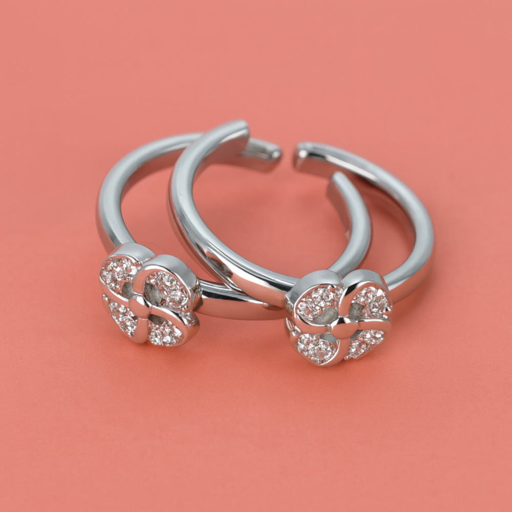 These toe rings feature a stylish interlocked petal design, resembling a four-leaf or infinity knot pattern.