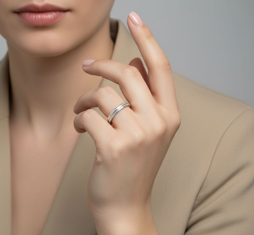 A Sleek And Minimalistic Band Ring Featuring A Subtle Matte Finish With a Fine Center Groove Line Running.