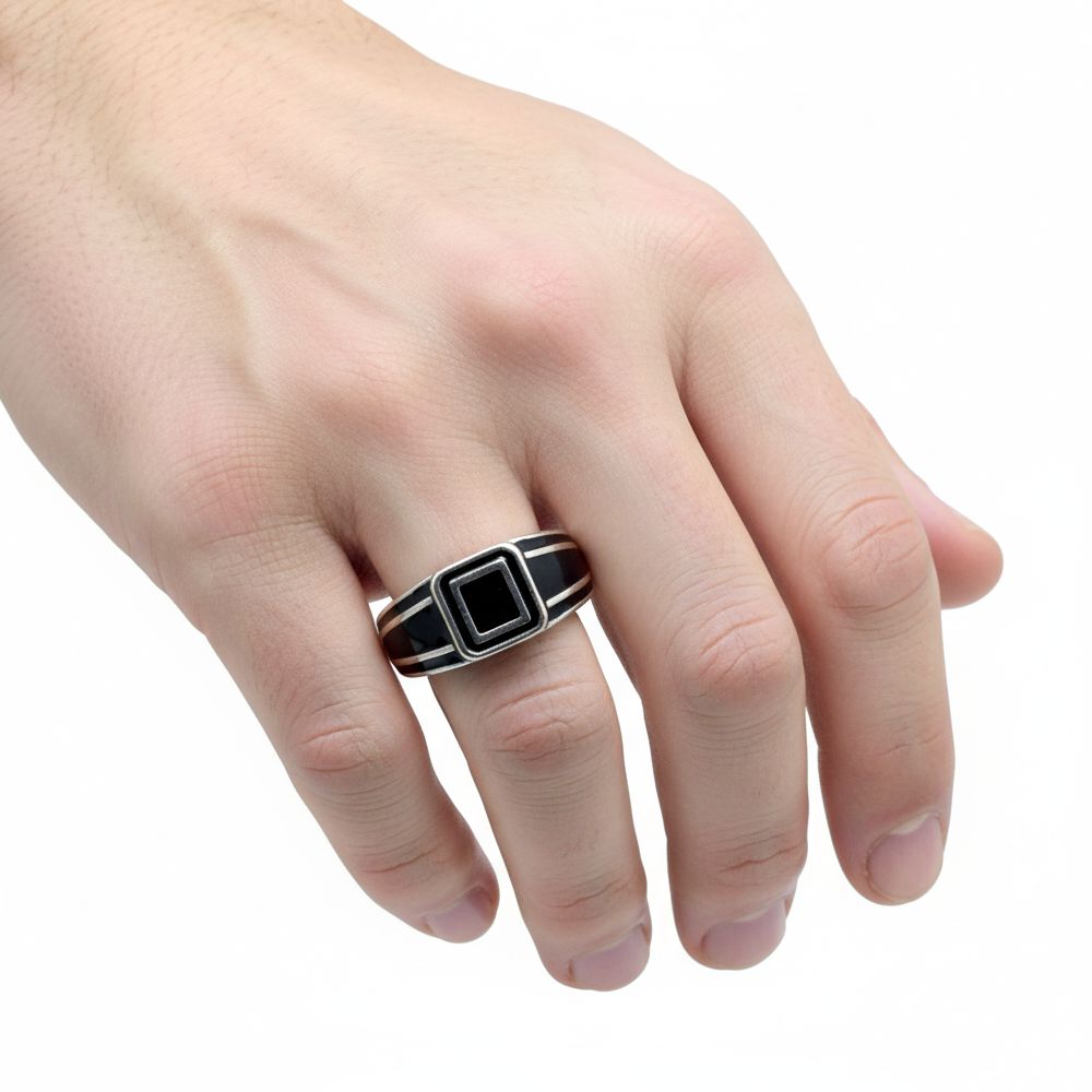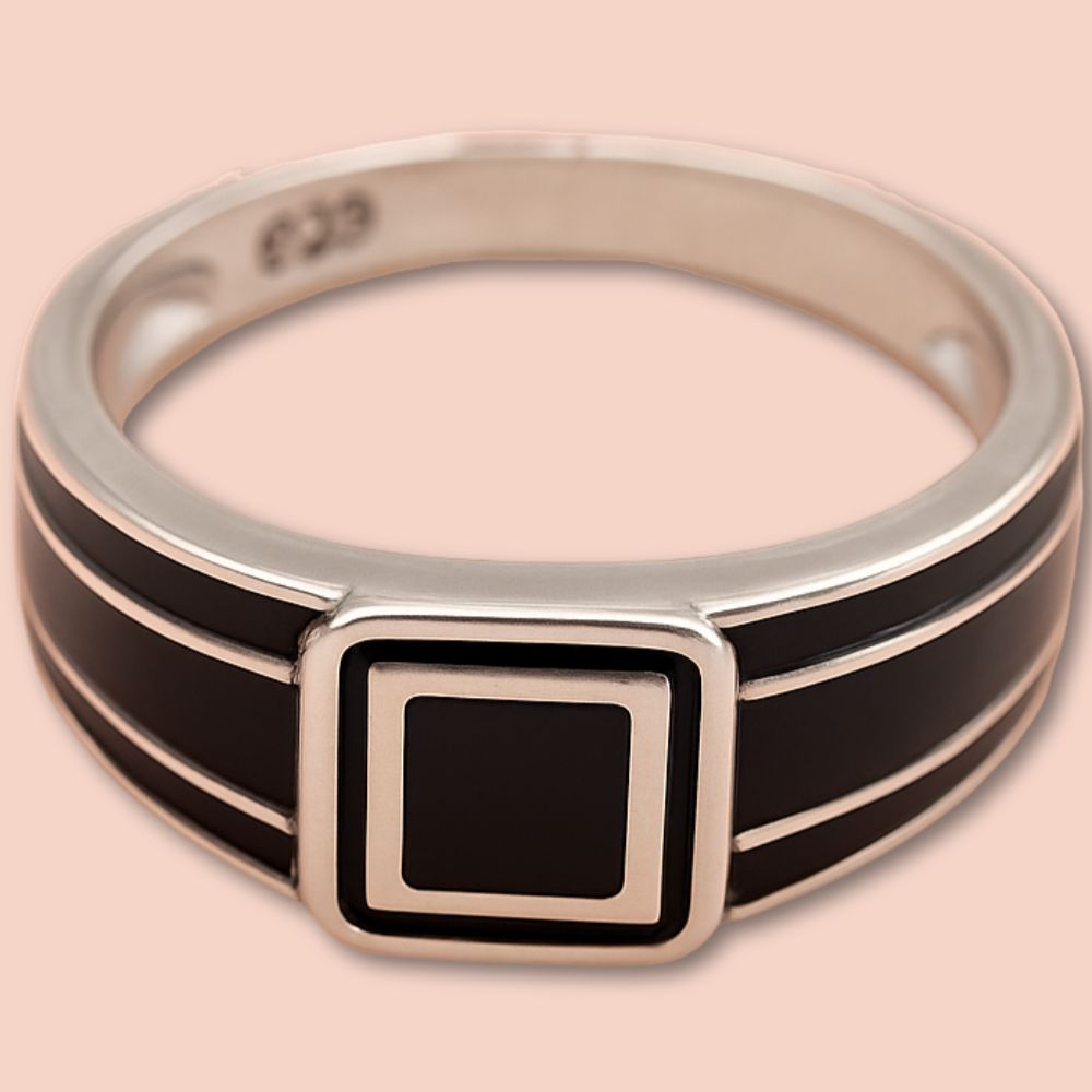 Elevate Your Style With This Modern Mens Enamel Ring Designed with Sleek Black Enamel