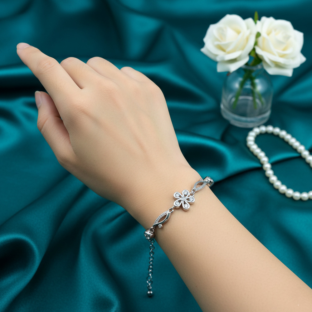 Pave-Set Rectangular Bars Teardrop Motifs And Circular Star-Inspired Charms.