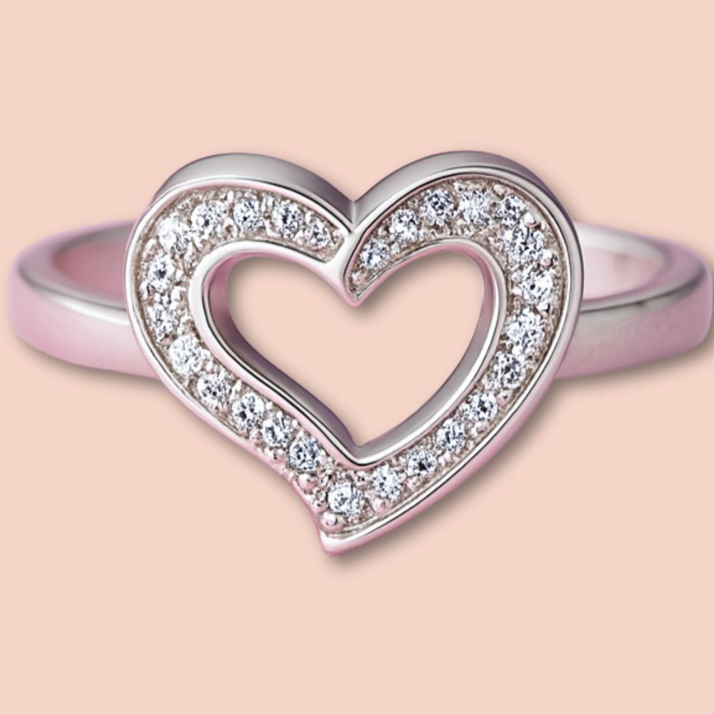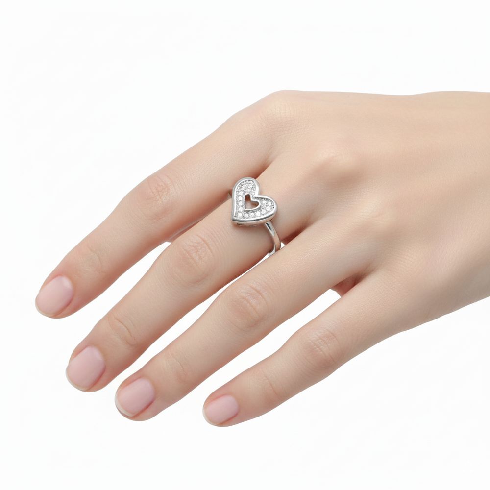 Celebrate Love With This Sparkling Open-Heart Ring, Featuring A Pave Crystal Heart Outline With A chic Cutout Design. Size- 8