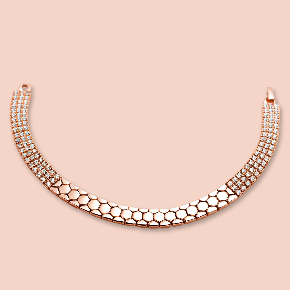 Rose Gold Plating, Featuring A Honeycomb-Inspired Cutout Pattern At The Center.