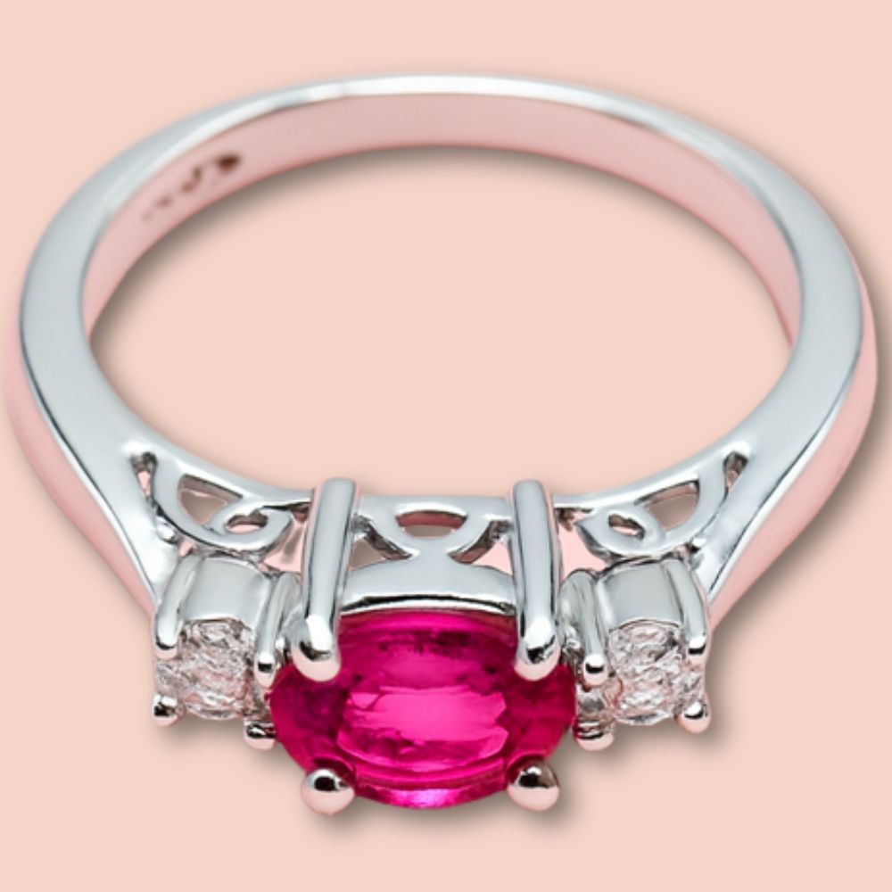 Celebrate Timeless Elegance With This Three-Stone Ruby And Ring.