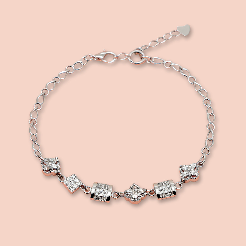 Floral Motifs Cubic Charms And Shimmering Square Accents With Sparkling Cubic Zirconia Stones.