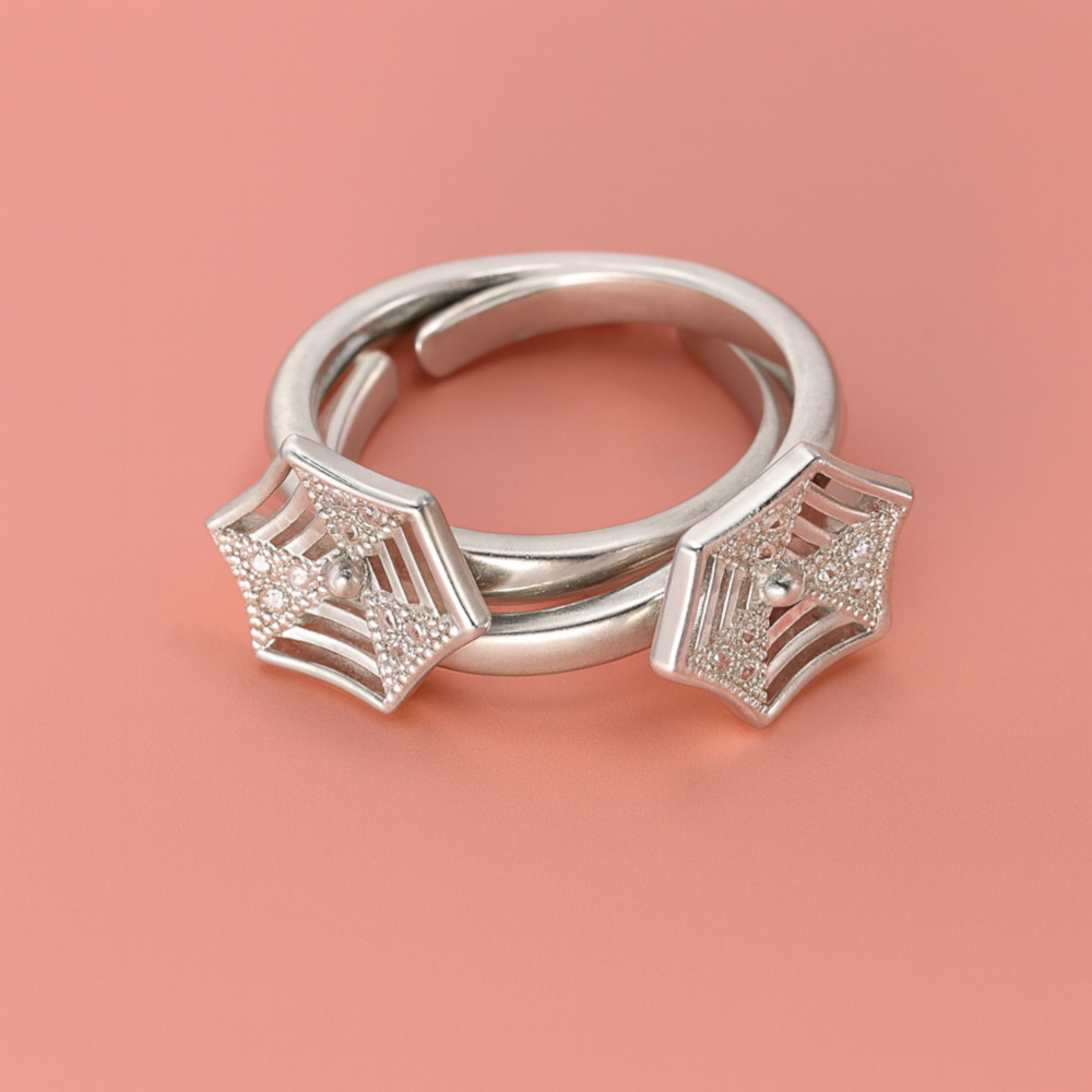 The toe rings in the image feature a spider web-inspired design, making them unique and edgy.