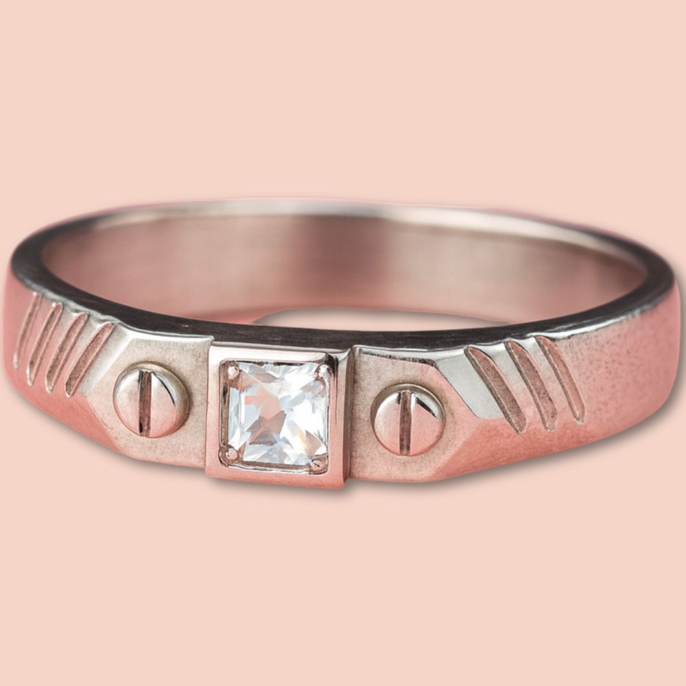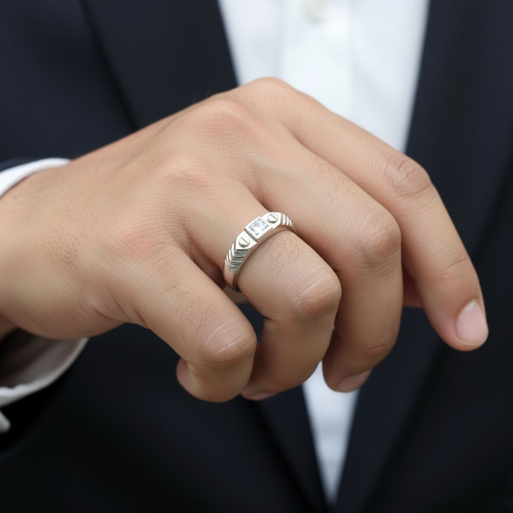 Make A Statement With This Industrial Square-Cut Ring Crafted In Polished Silver-Tone Metal The Ring. Size-21