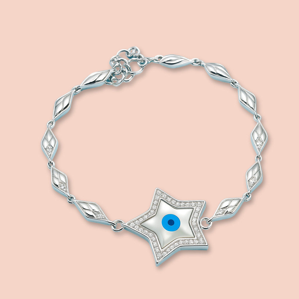A Unique Bracelet That Combines The Timeless Symbol Of The Evil Eye With A Modern Star-Shaped Design.