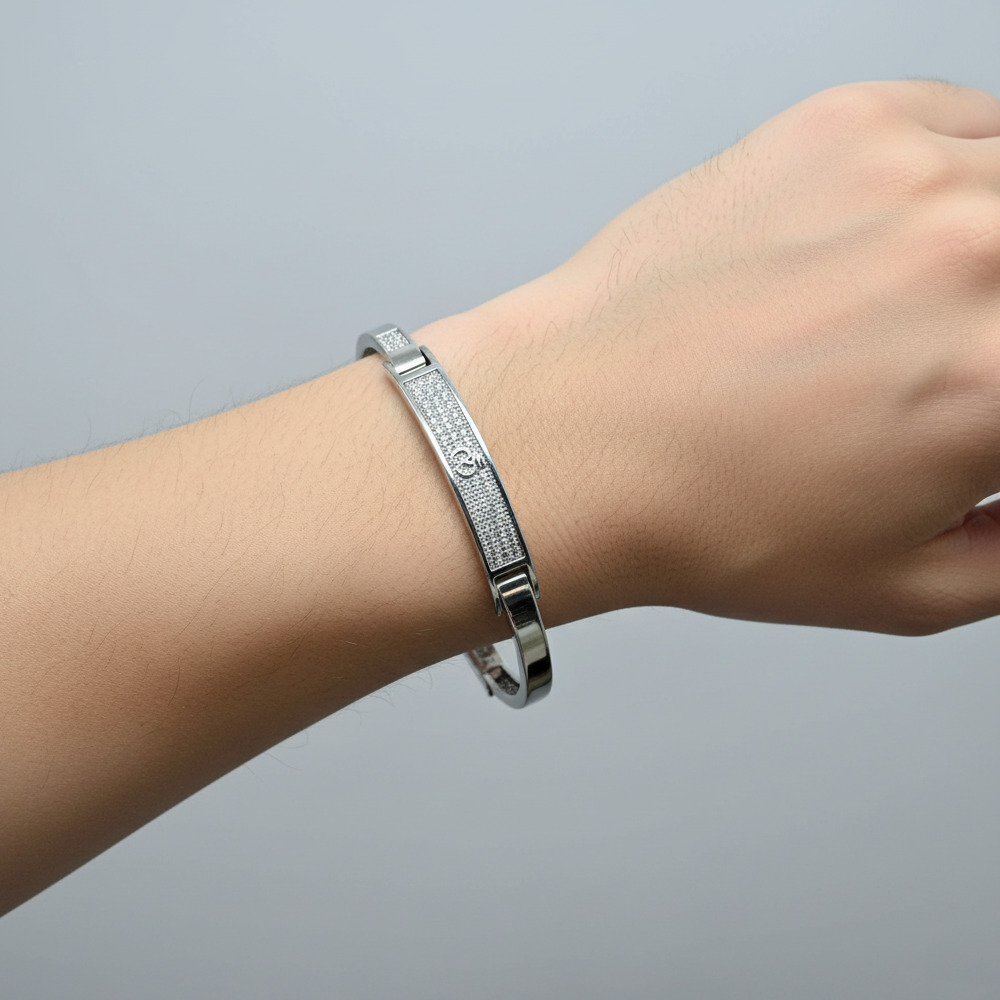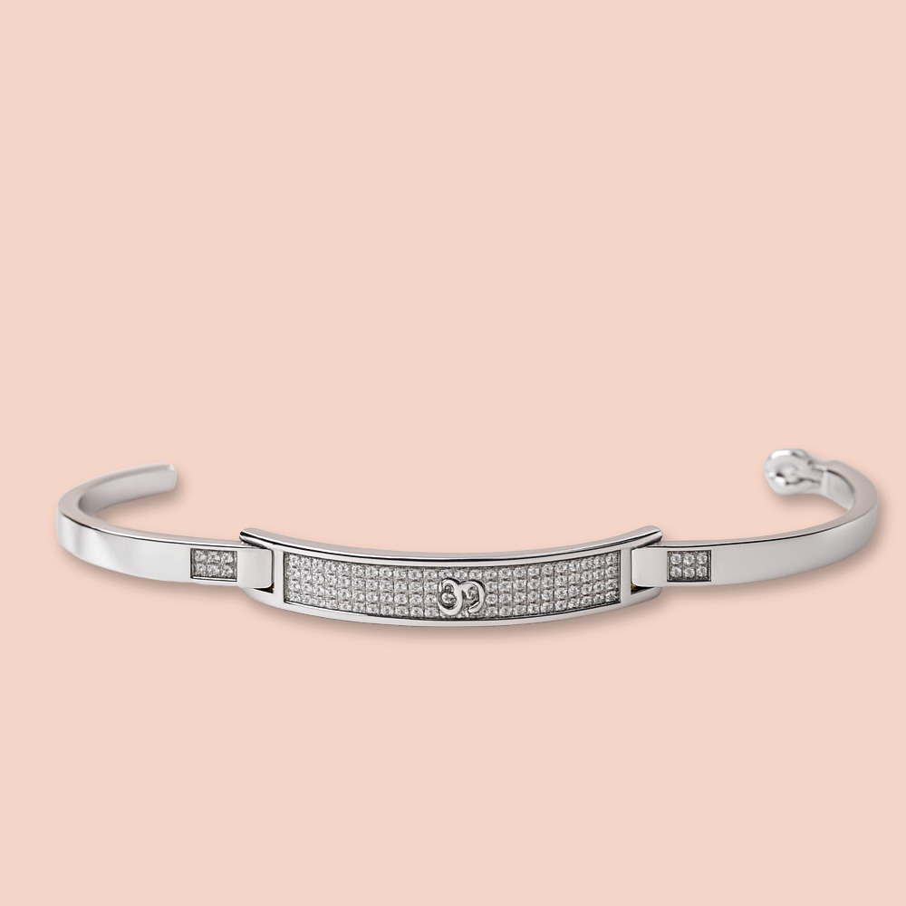 Open Cuff Design, Made Of Polished White Metal (Likely White Gold, Platinum, Or Sterling Silver.