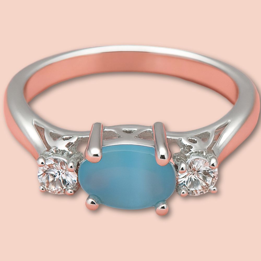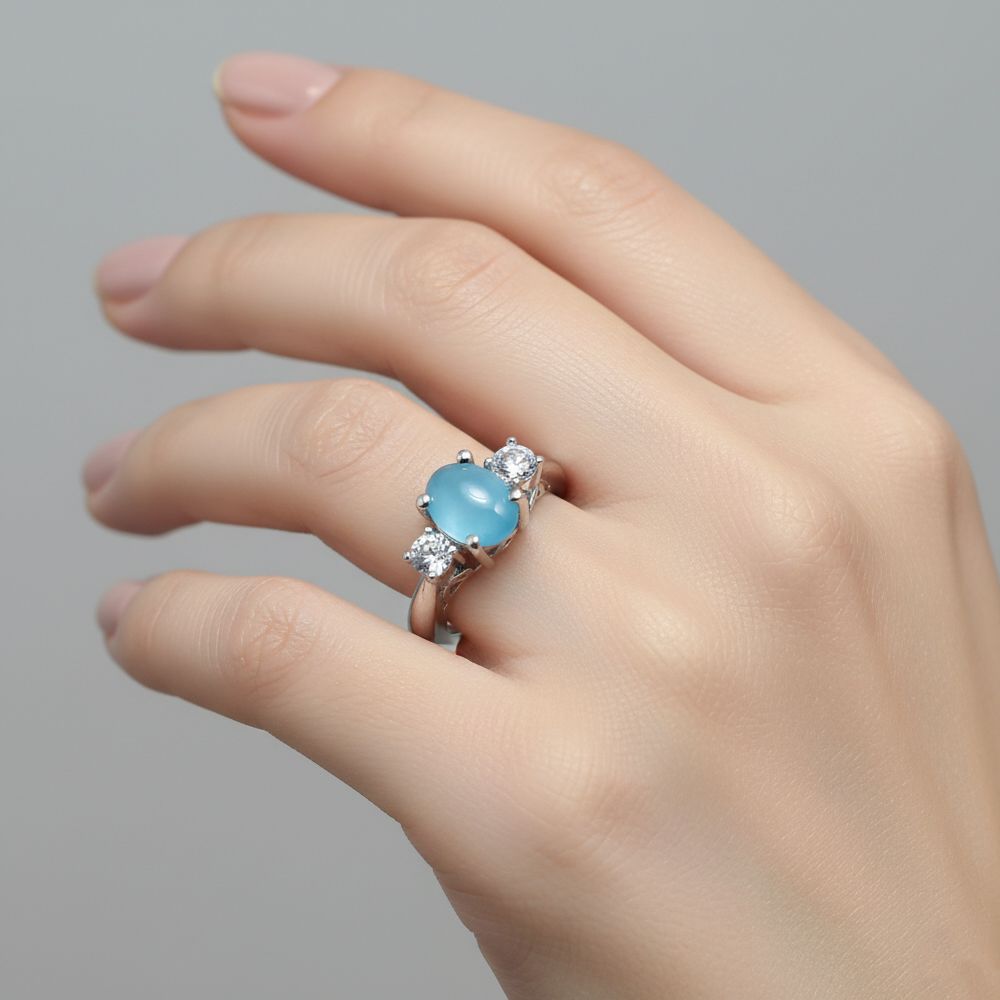 Crafted In Polished Silver Tone Metal This Ring Features A Captivating Oval Shaped Blue Gemstone At The Center Size- 10