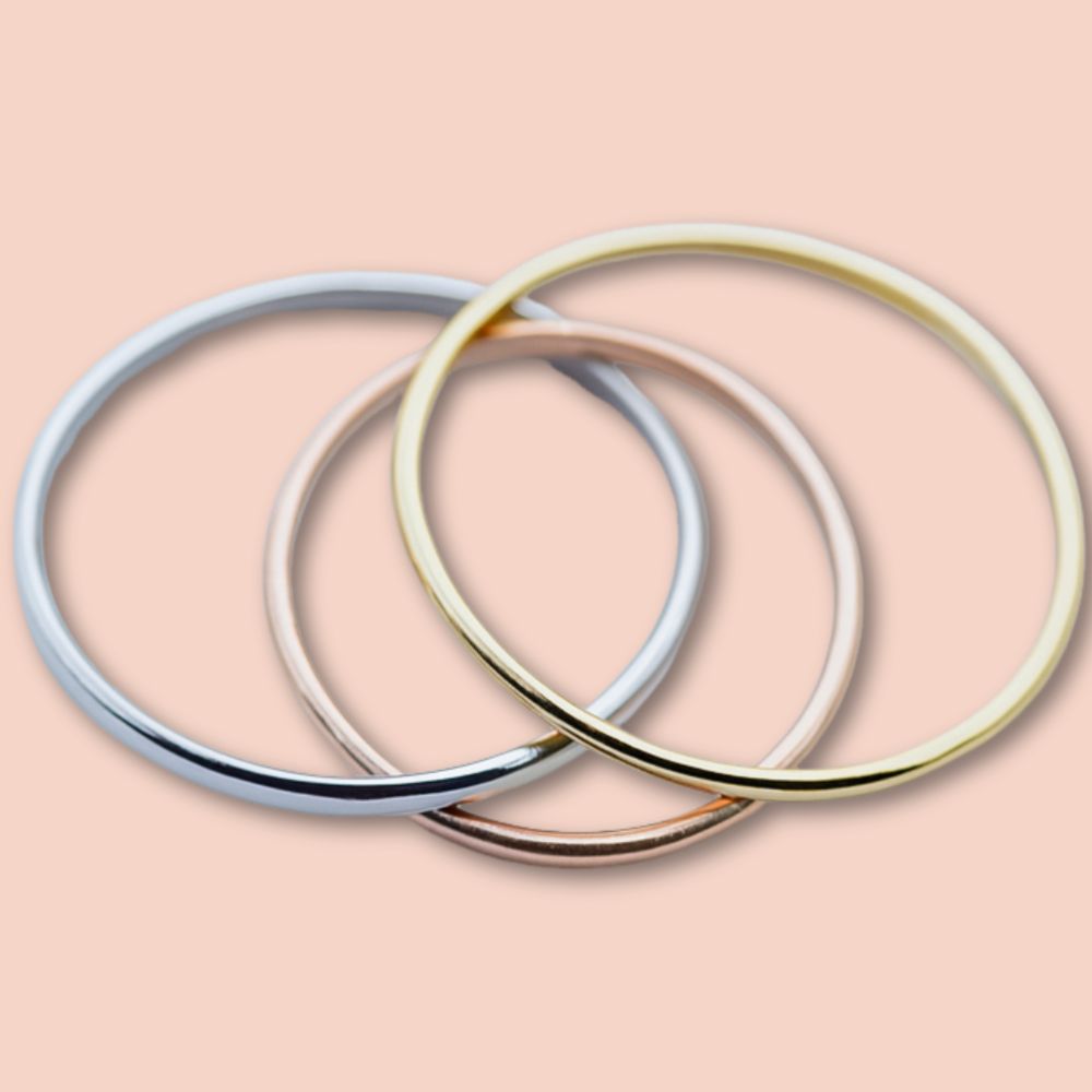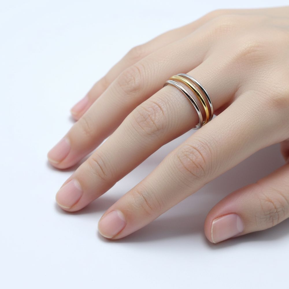 A Timeless Tricolor Rolling Band Ring Crafted With Three Interlocking Bands In Silver Gold, And Rose Tones. Size-17